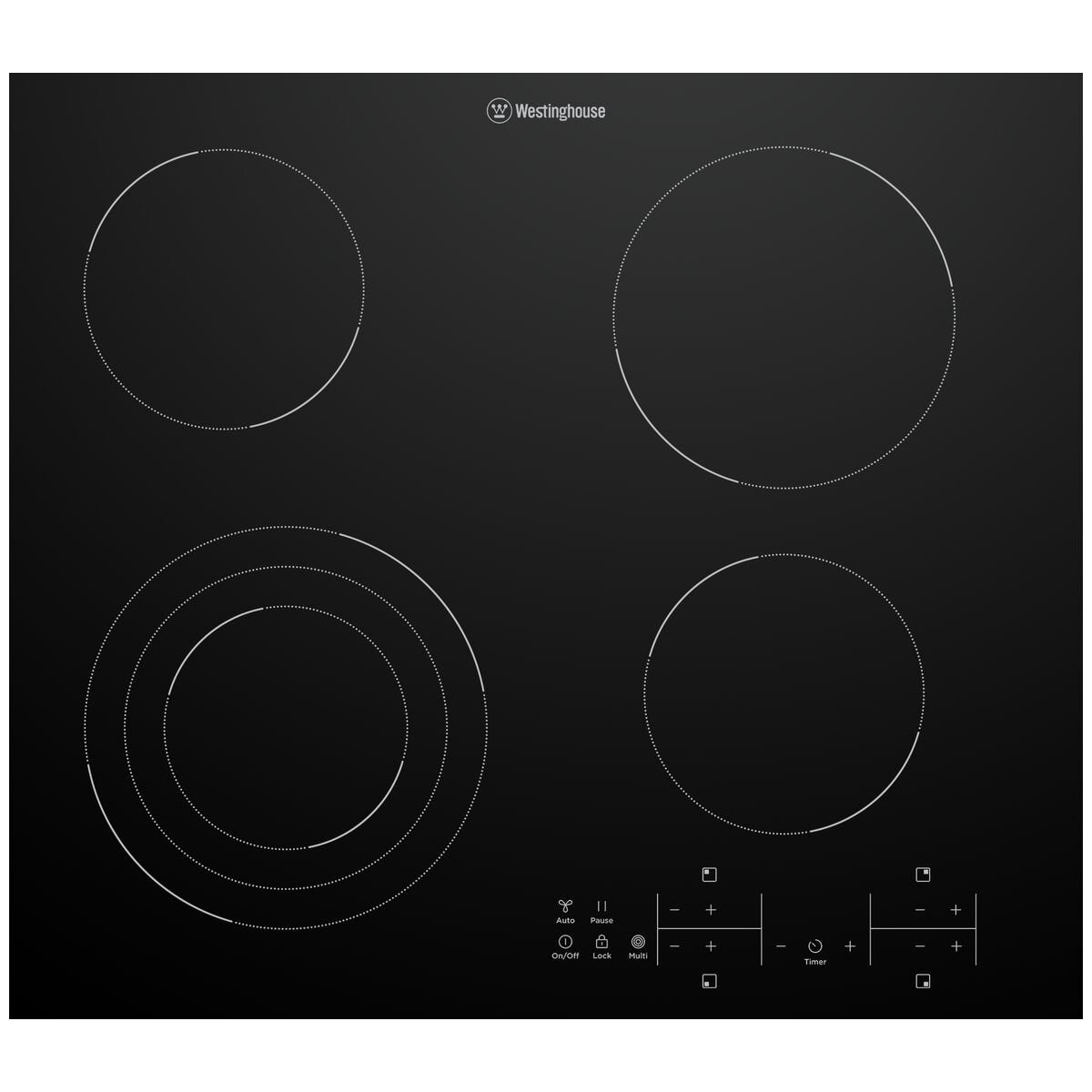 Westinghouse 60cm Triple Variable Zone 4 Burner Cooktop Model WHC643BE
